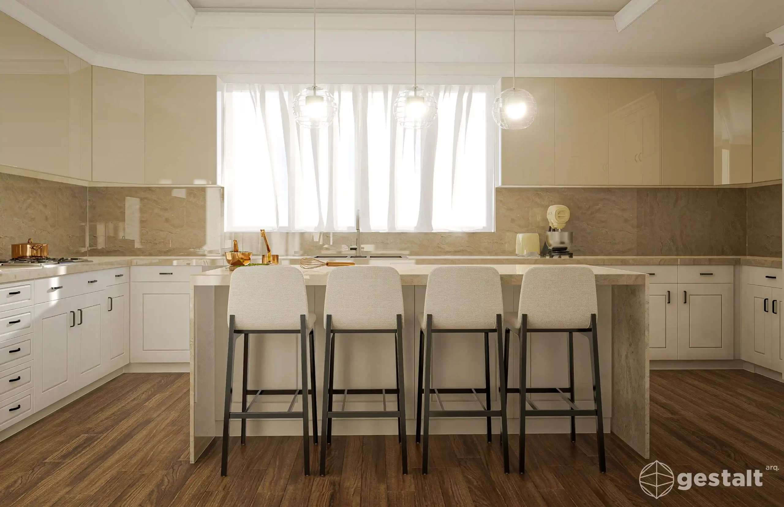 La propuesta se centra en una distribución fluida que permite cocinar, organizar y compartir momentos en un mismo lugar, integrando mobiliario a medida, materiales de alta calidad y detalles que hacen la diferencia.
