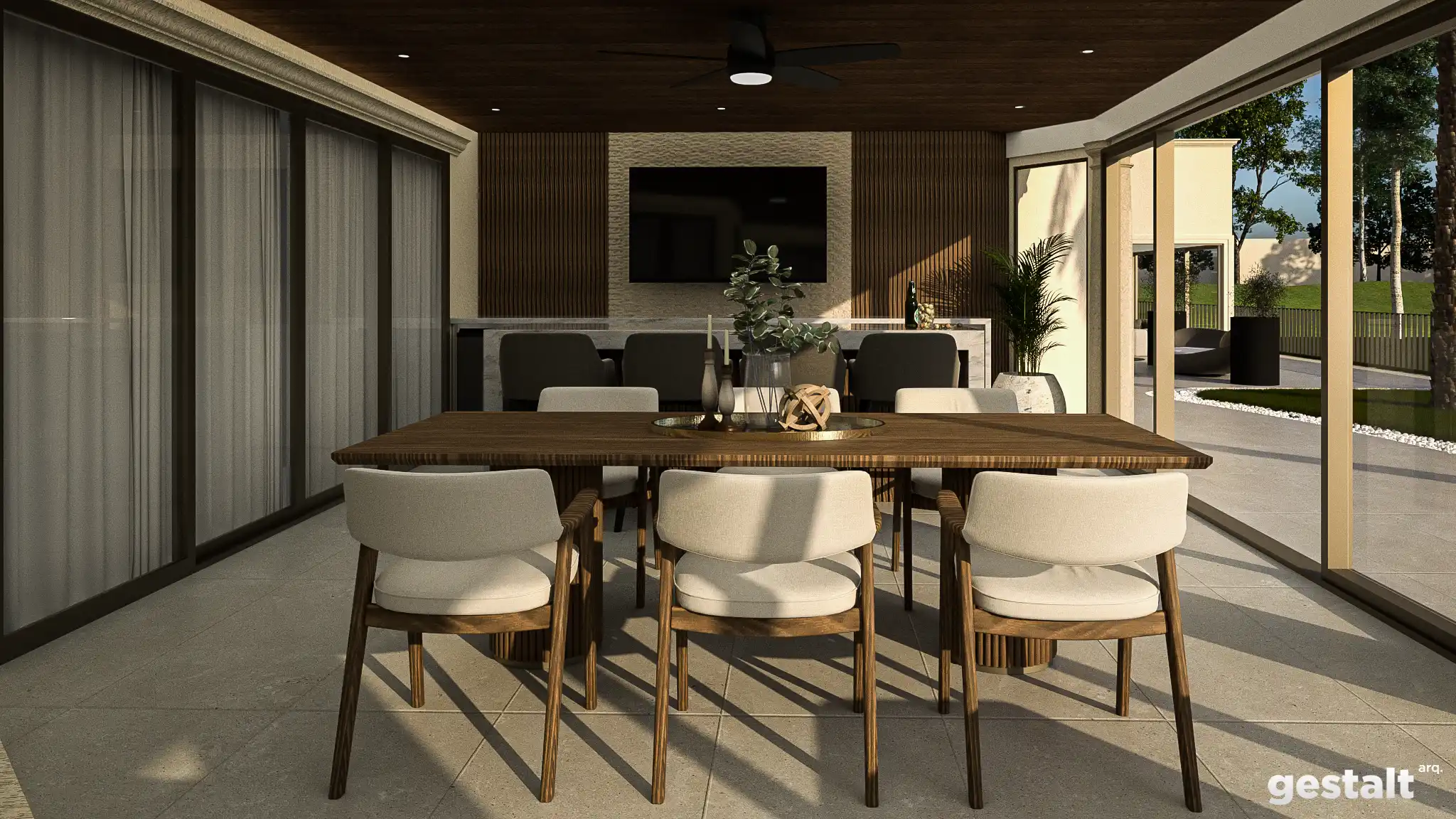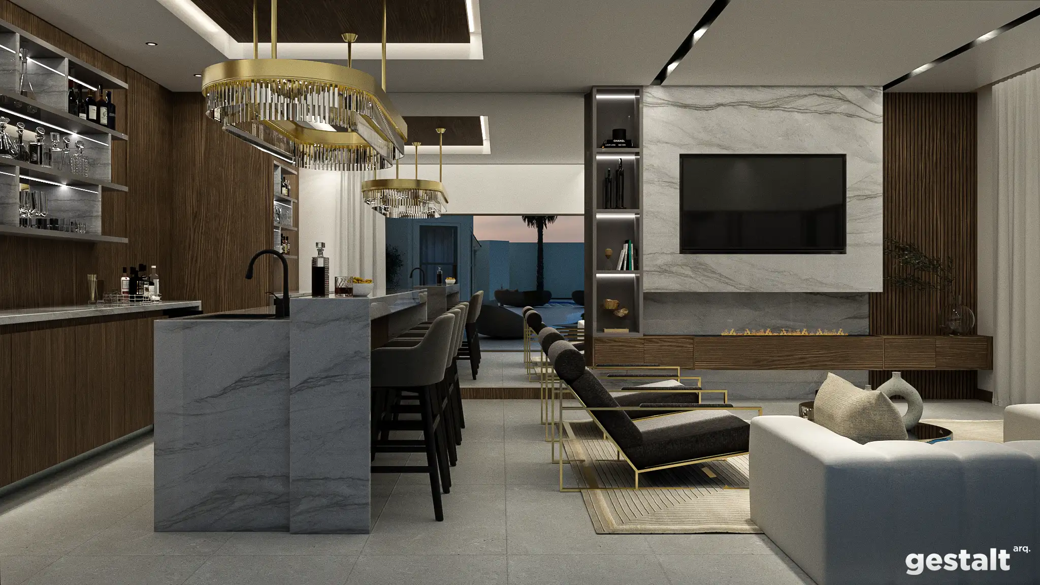 El proyecto integra materiales cálidos y una distribución fluida que permite disfrutar de la experiencia al aire libre sin renunciar al confort ni a la elegancia.